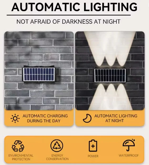 SET 2 LAMPI SOLARE BIDIRECTIONALE CU LUMINA SUS - JOS , 12 LED LUMINA ALB CALD SI RECE