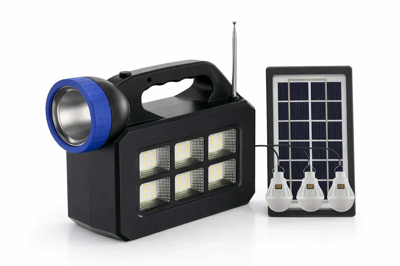 Panou Solar 5W • 3 Becuri LED • Radio FM • Bluetooth • Zero Costuri Energie