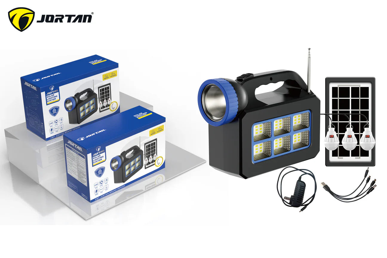 Sistemul Jortan T08 este soluția completă pentru independență energetică în orice situație. Cu un powerbank masiv de 25000mAh, panou solar de 5W și sistem de iluminare cu 3 becuri LED, ai energie nelimitată pentru camping, urgențe sau aventuri outdoor. Funcționalitățile integrate de radio FM și difuzor Bluetooth transformă acest generator într-un centru de comandă portabil pentru orice aventură.